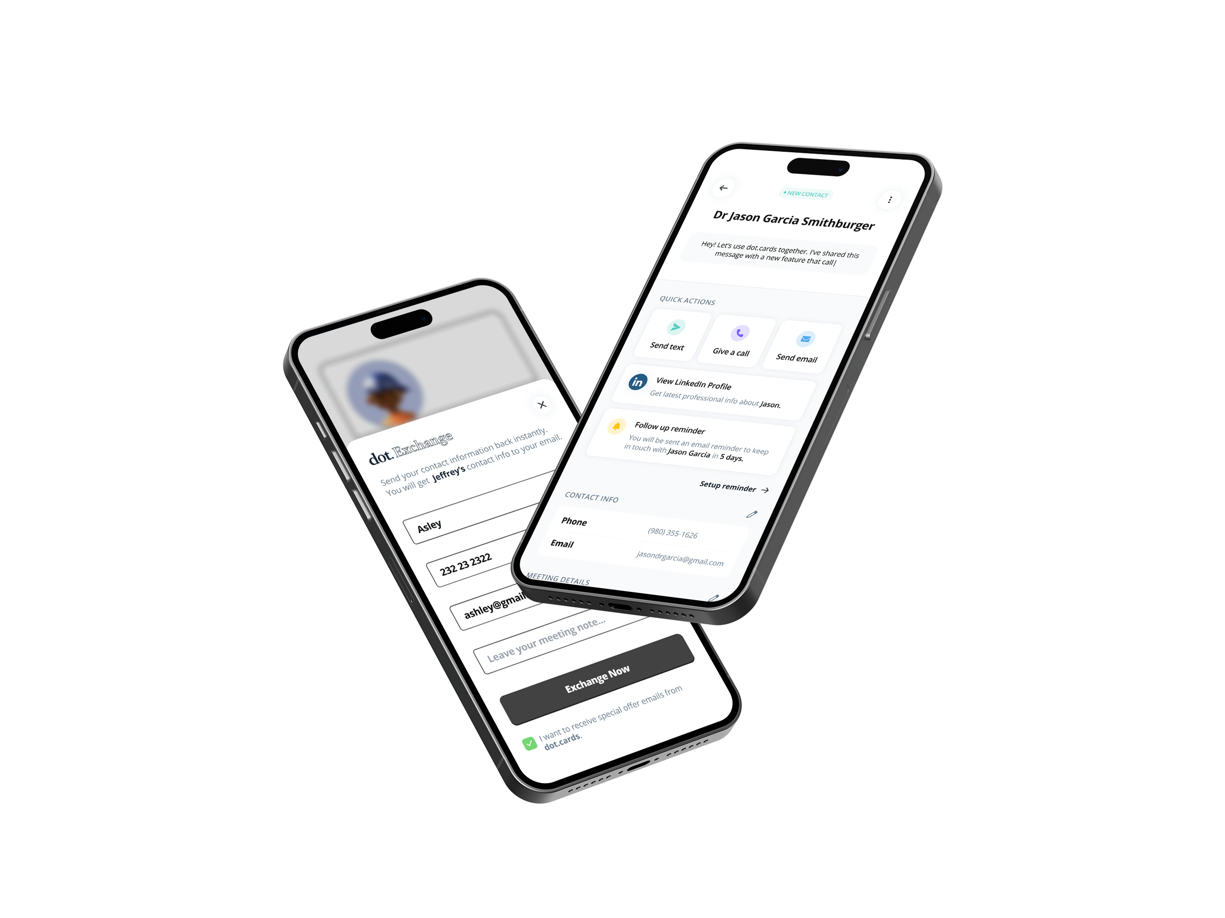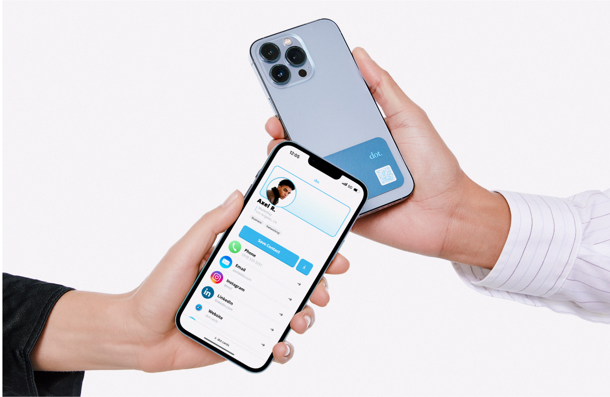 Switching to a digital business card like dot.card is not only sustainable, reducing paper waste, but also enhances efficiency with its one-tap sharing and universal compatibility with smartphones.